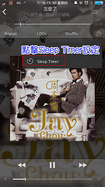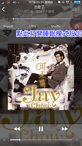 雖然是聆聽雲端空間的音樂,還是有睡眠模式唷,點擊紅色方框設定